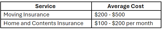Moving Insurance: Costs vary based on the value of your items and the level of coverage, typically ranging from $200 to $500.