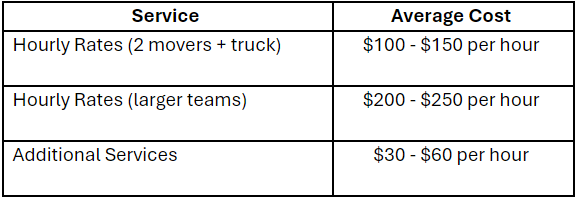 Additional Services: If you require packing, unpacking, or special handling of items like pianos or antiques, expect additional charges. Packing services can cost an extra $30-$60 per hour per packer.